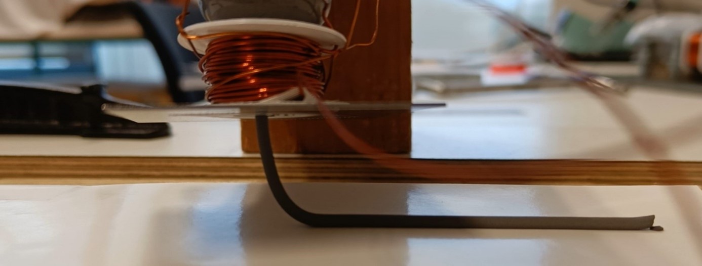 De elektromagneet die wordt gebruikt voor het magnetiseren van de kirstallen, foto door Lukas Lammens