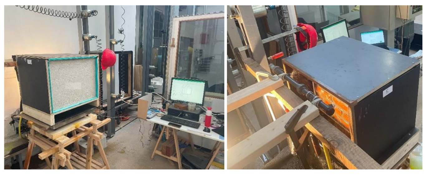 De regendichtheid van het metselwerk werd via experimenten onderzocht. Daarom werden 18 muurtjes gebouwd in het labo, met 6 soorten baksteen, 3 soorten mortels en een laagje kalkhennep isolatie. Naast de alomtegenwoordige cementmortel werd ook kalkmortel onderzocht. Die mortel maakt het mogelijk om bakstenen later weer los te maken en ze te hergebruiken, iets wat we circulariteit noemen. Ten derde werd bastaardmortel getest, een combinatie van kalk en cement. De muurtjes werden vervolgens 1 uur lang besproeid met een kunstmatige regenbui. Door de muurtjes tijdens de test op een weegschaal te zetten en kleurstof te mengen in de isolatie, konden we inschatten hoeveel water in de muur terechtkwam én waar het zich bevond.
