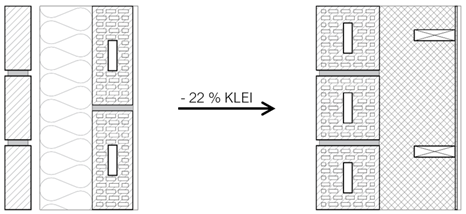 Schematische voorstelling van een traditionele spouwmuur vs het alternatief van BLAF architecten