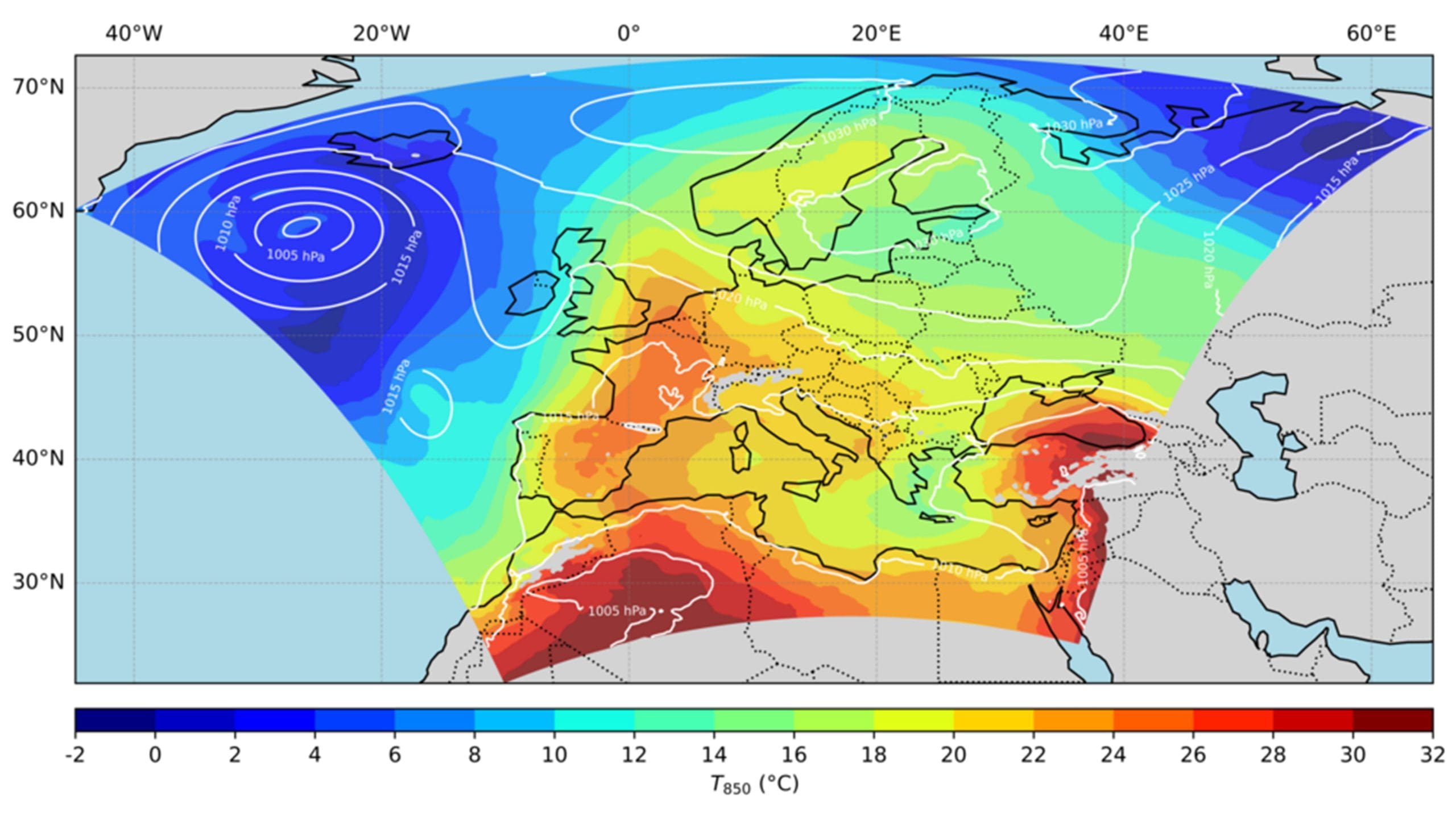 Het gevolg is dat stabiel en vaak droog weer dagen- tot wekenlang kan blijven hangen. In de dagen voor de sterkste pieken in temperatuur werd bovendien ook een cycloon of lagedrukgebied ten westen van de Britse Eilanden waargenomen. Deze cycloon is vermoedelijk verantwoordelijk voor het aanvoeren van warme Afrikaanse lucht naar West-Europa.
